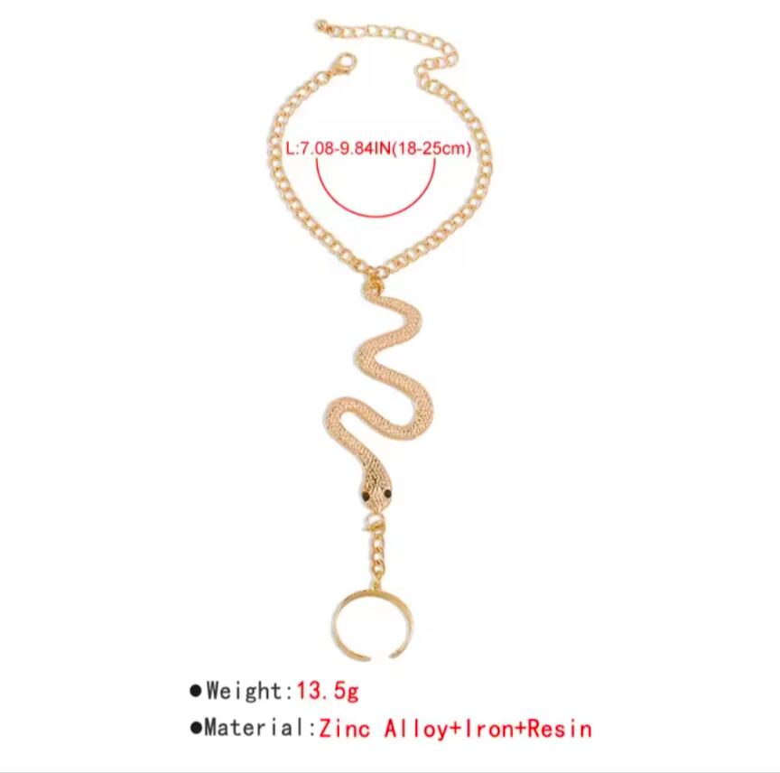 インパクト抜群!ユニークなスネークデザインのリング一体型ブレスレット。