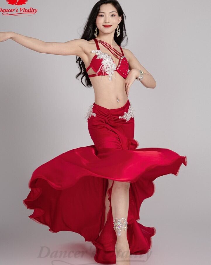 華やかな赤が魅力のオリエンタル衣装は、ベリーダンスを心ゆくまで楽しむための完璧なアイテムです!美しい花柄のデザインが特徴で、ダンスを一層引き立てる効果があります。Mサイズで、多くの体型にフィットし、快適な動きをサポートします。