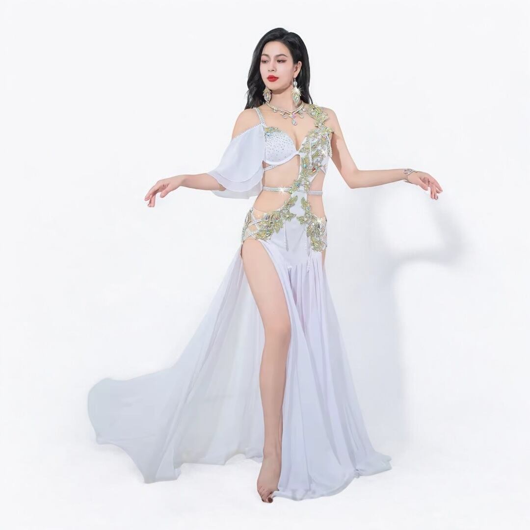 #ベリーダンス衣装 #オリエンタル衣装 #ベリーダンスコスチューム #ステージ衣装 #発表会衣装 #白衣装 #煌びやか衣装 #ダンスコスチューム #bellydancecostume