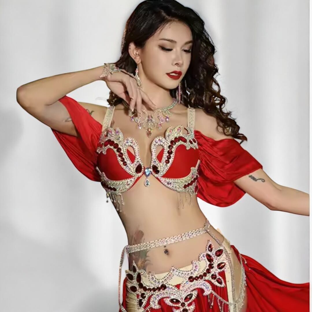 華やかなストーン装飾が目を引く、オリエンタルスタイルのベリーダンス衣装セット。