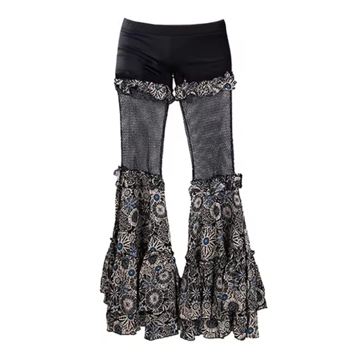 パンツの裾には華やかなフリルを施し、動きに合わせて揺れるデザインが魅力。