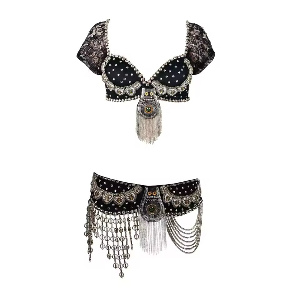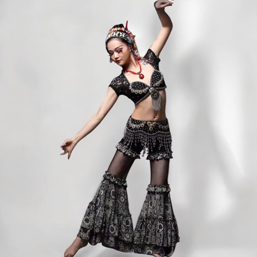 トライバルフュージョンやATSスタイルにぴったりの、ブラ・ベルト・パンツの3点セット。